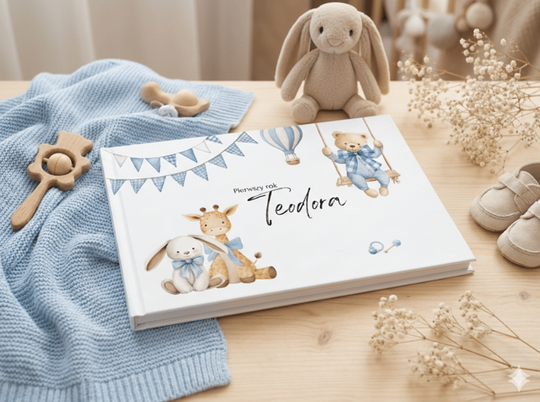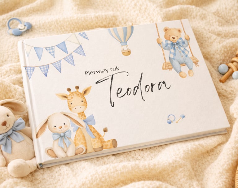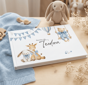 Stwórz personalizowany album, który opowiada historię pierwszego roku życia Twojego dziecka — od pierwszych dni aż po pierwsze urodziny.
